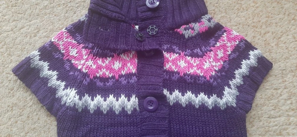 Bardzo ładny, włóczkowy bezrękawnik ze stójką. Posiada 2 kieszonki. Kolor ciemnofioletowy. Roz. z metki 3-4lata. Posiada wszystkie guziki, 6szt. W bardzo dobrym stanie. Nie zmechacony. Brak pozaciąganych nitek. Bez plam. Skład: 54% akryl, 26% nylon, 3% wełna, 17% angora. Marka girl2girl.