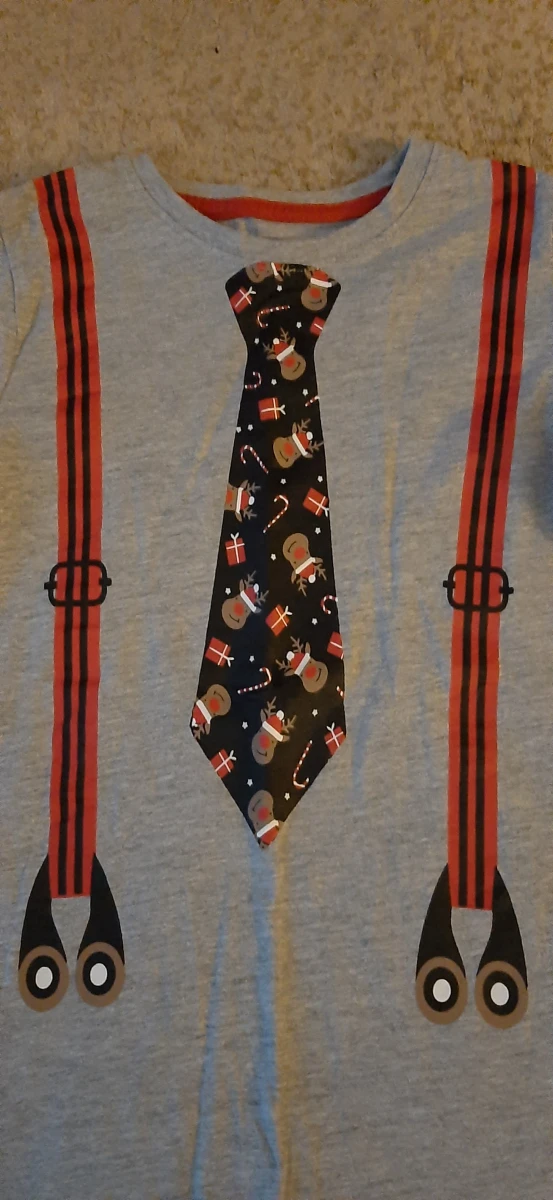 Bluzeczka chłopięca z długim rękawem świąteczna. Roz.7-8lat/128. Stan bardzo dobry. Aplikacja nie popękana. Bez plam, bez dziurek, bez przebarwień. Skład: 90% bawełna i 10% wiskoza. Wyprodukowano w Bangladeszu. Marka Little Kids.