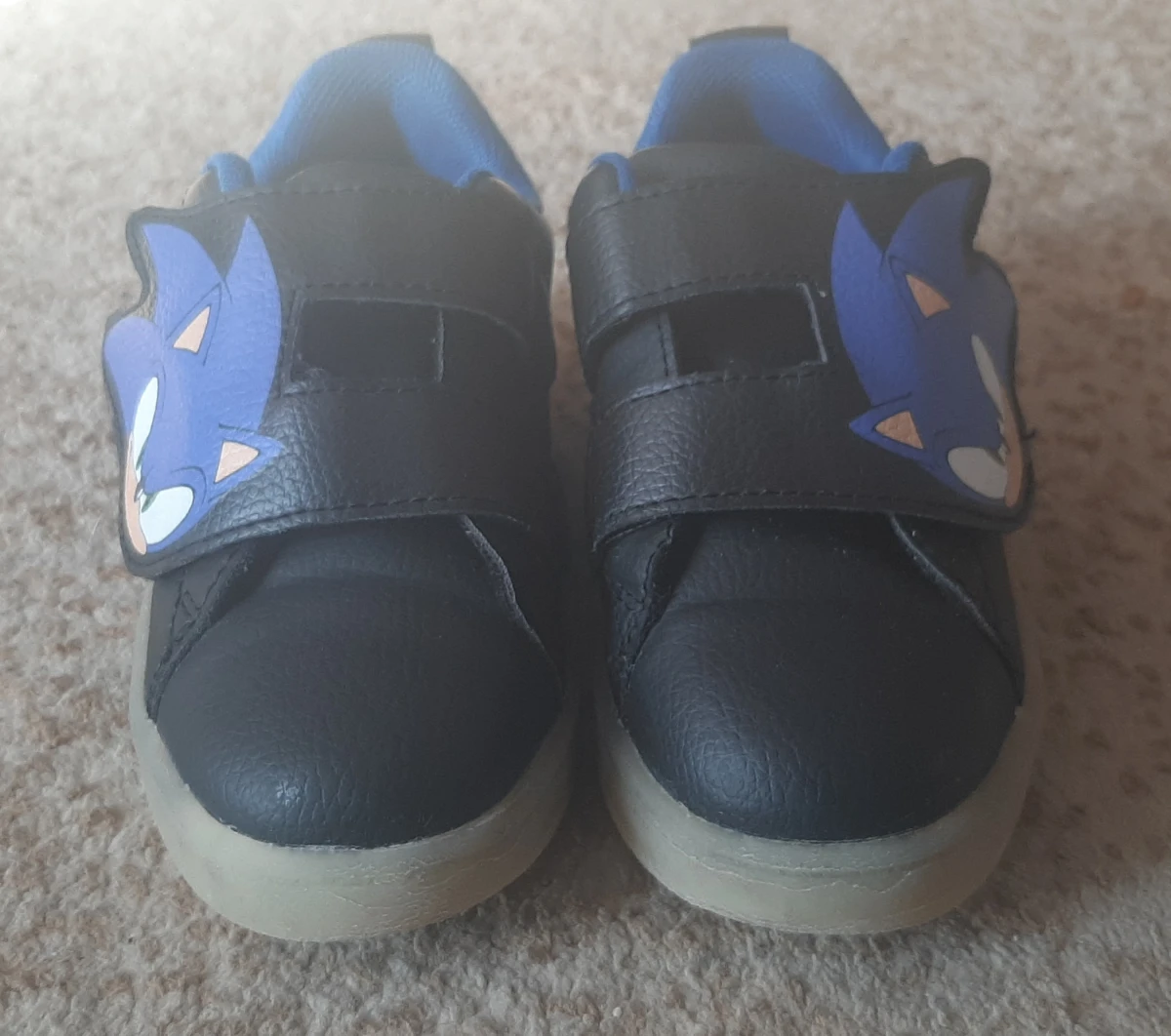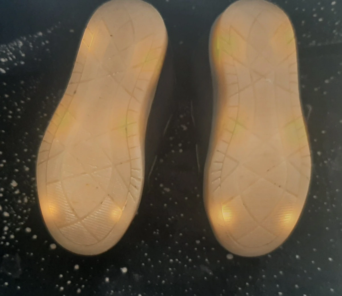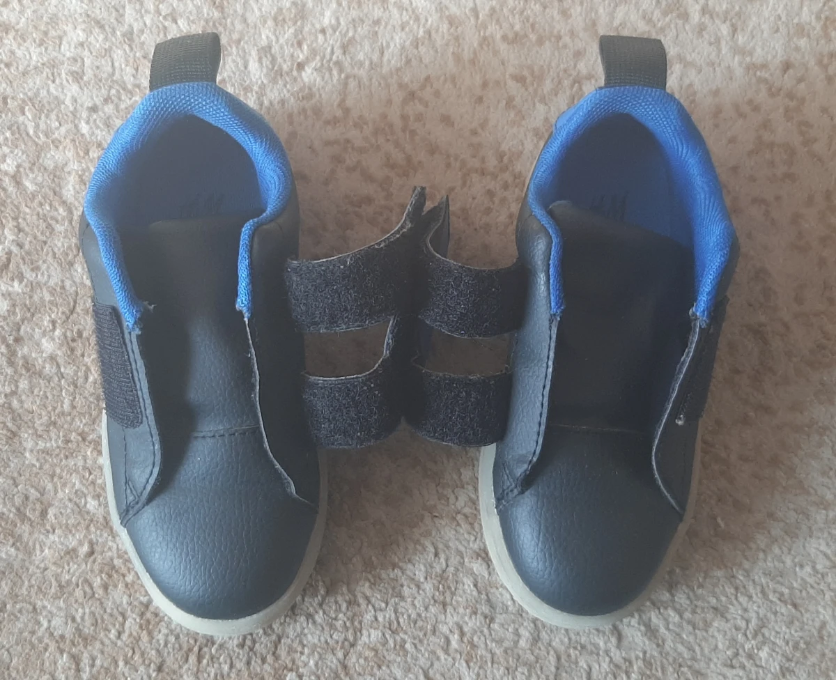 Buty chłopięce, granatowe, świecące. Rozmiar 26. Na rzepę, trzyma bardzo mocno. Będą pasować na stópkę szeroką i z wysokim podbiciem. W bardzo dobrym stanie. Butki świecą na całej powierzchni; 6 światełek w każdej poszewie, zdj.8. Długość wewnątrz buta 16,5cm. Wkładka nie wyciągana.