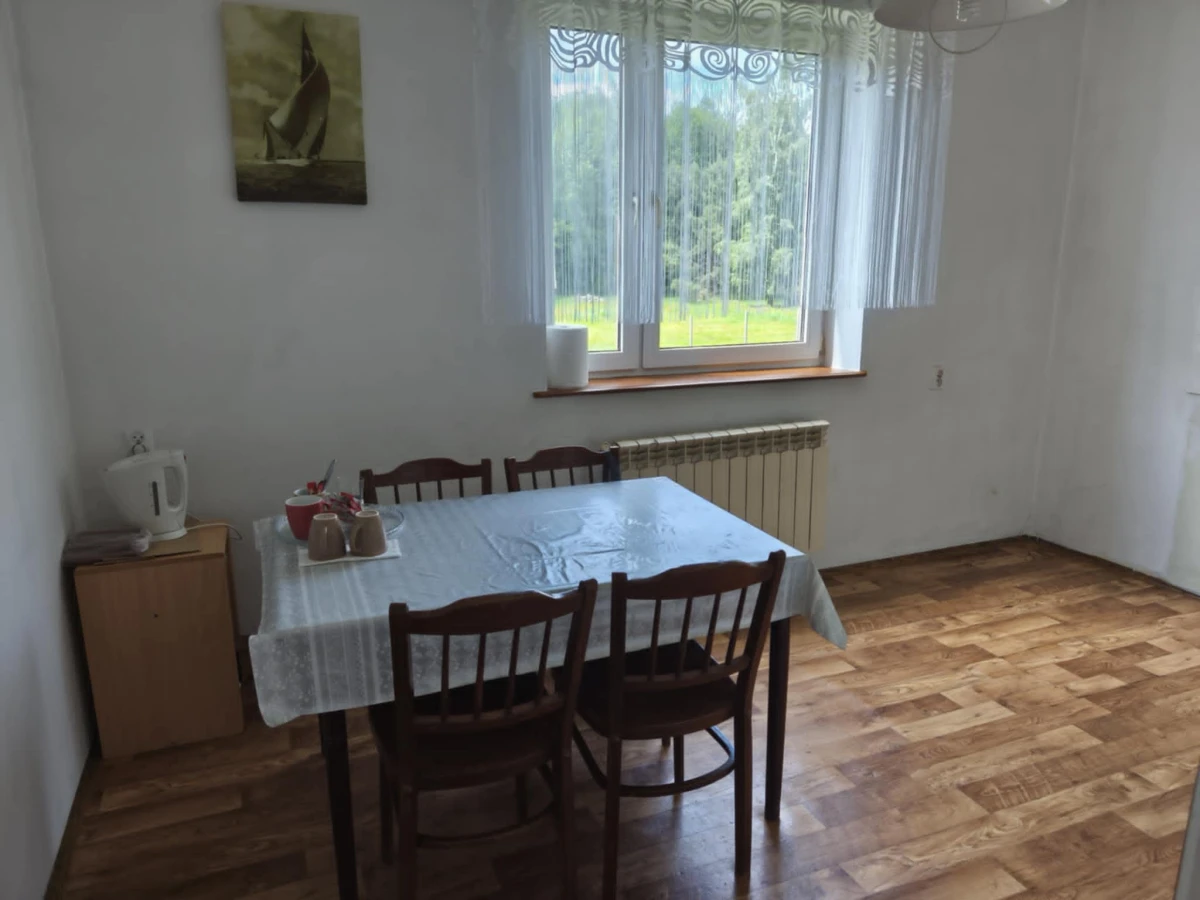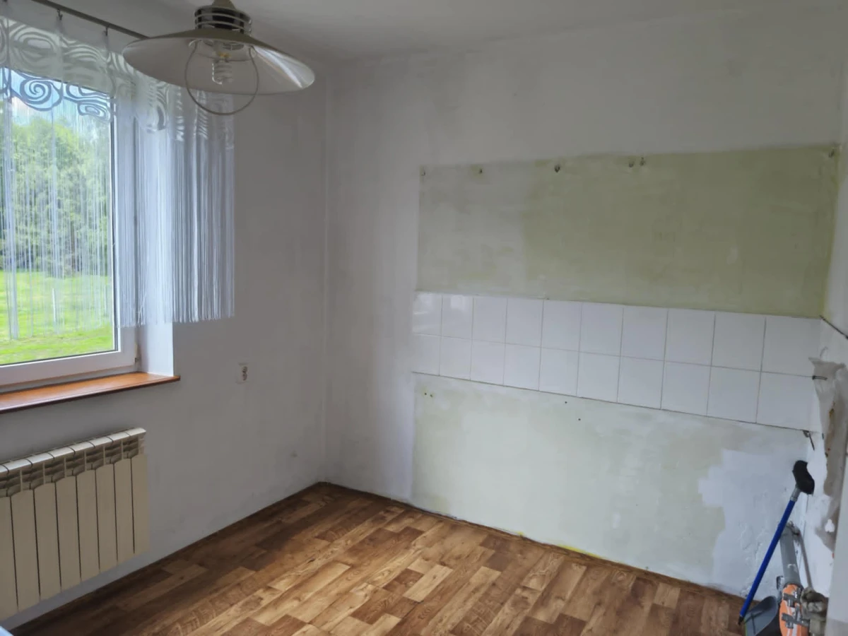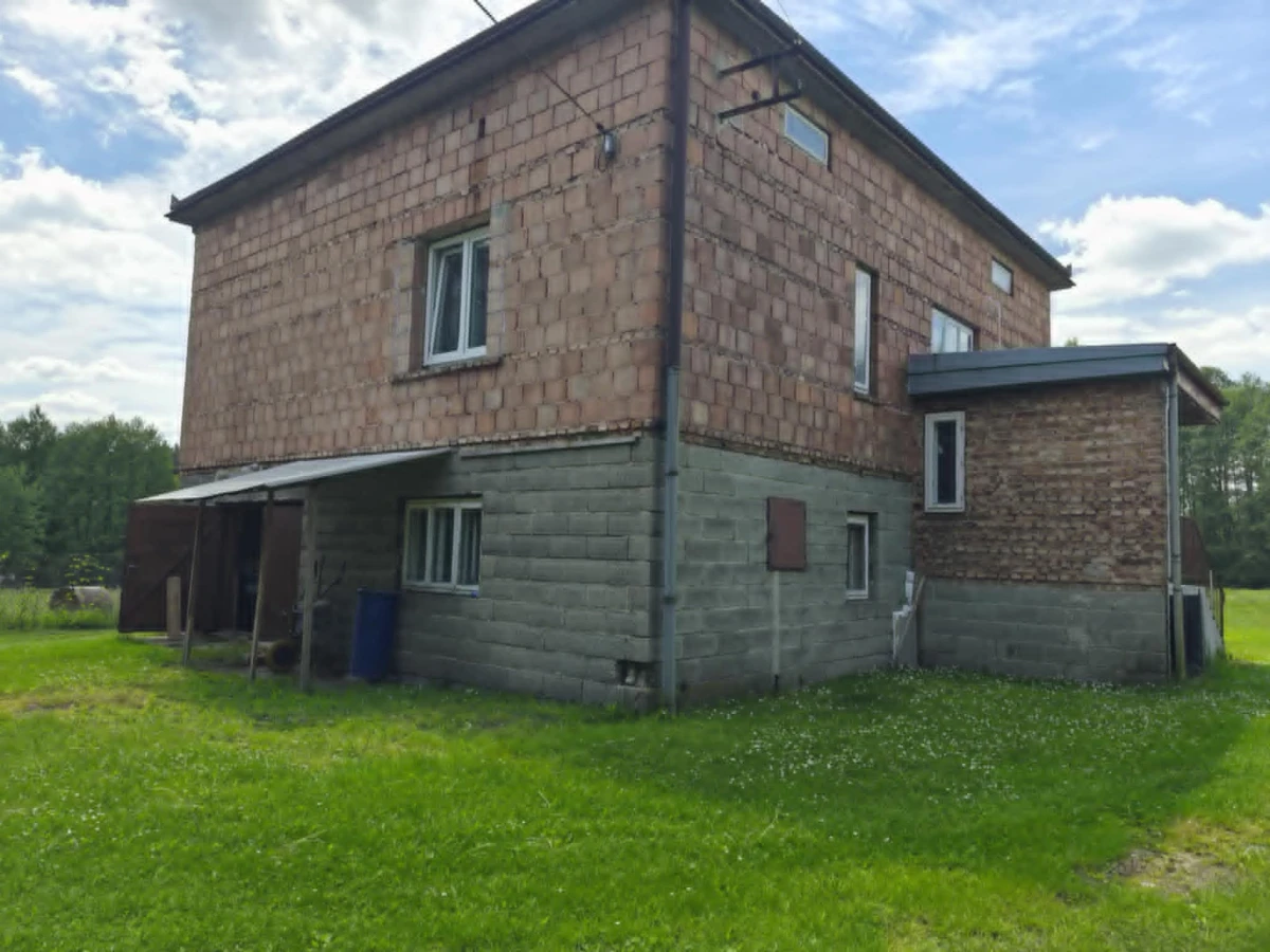 Dom murowany o powierzchni ok. 95m2 z jednym piętrem, strychem nieużytkowym. Parter domu może być wykorzystany jako garaż lub pomieszczenie gospodarcze. Budynek wybudowany w roku 1980. Dach czterospadowy pokryty blachą. Dom składa się z: kuchni, 3 pokoi, łazienki z wc.