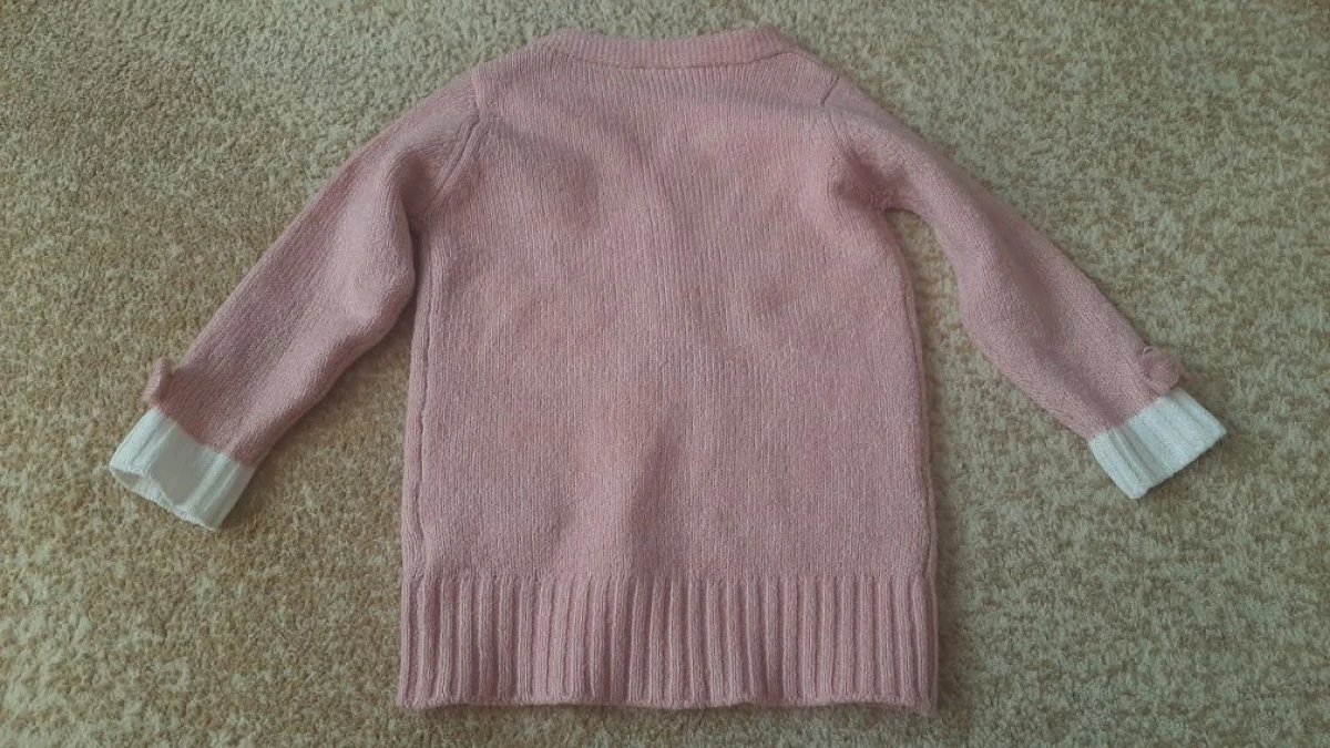 Elegancki sweterek dziewczęcy w kolorze brudnego różu. Włóczkowy. Rozmiar z metki 2-3lata/98. 2 kieszonki. W bardzo dobrym stanie. Nie zmechacony. Może założyć jako okrycie wierzchnie na wiosnę lub jesień. Lub jako sweterek pod kurtkę w zimie. Skład: 50% poliester, 48% akryl, 2% elastan.