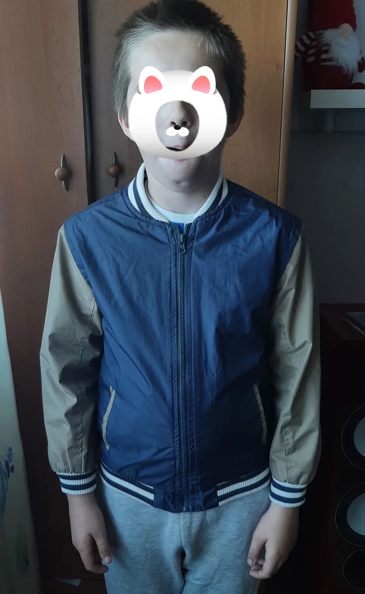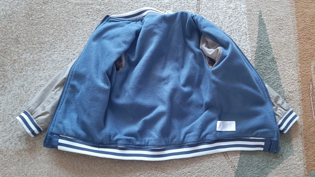 Kurtka chłopięca przejściowa, rozmiar 8/9 lat. Ładna, nie zniszczona, bez plam. Zamek sprawny, nie zacina się. Od wewnątrz ocieplona polarkiem, a rękawy mają podszewkę. 100% poliester.