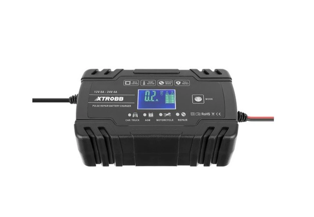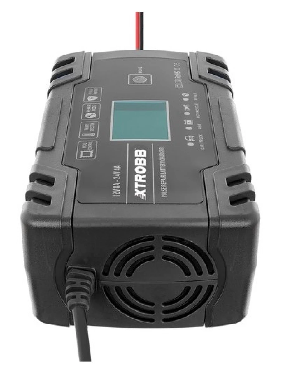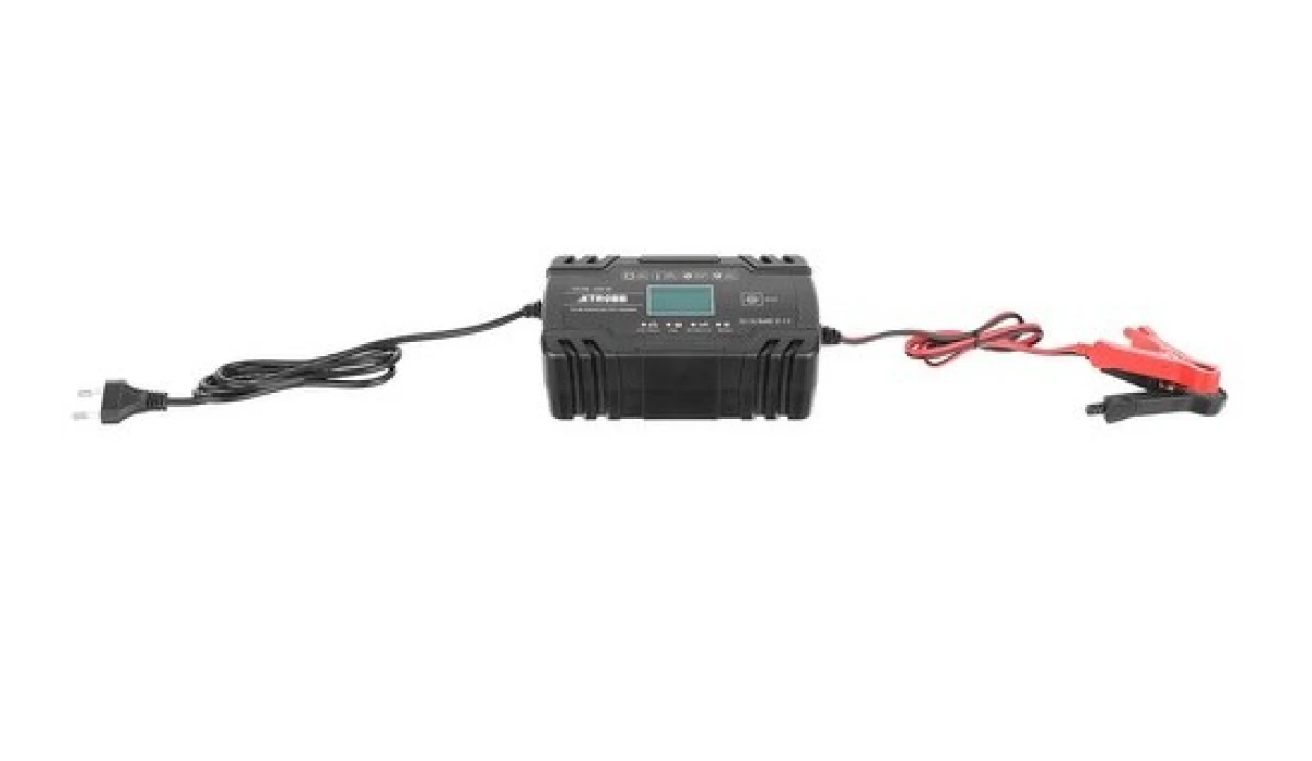 - SPECYFIKACJA - kolor: czarny; napięcie wejściowe: 100-240 V; moc znamionowa: 12V/8A, 24V/4A; zakres baterii: 6-150 Ah; moc: 130 W; zabezpieczenie termiczne: 65°C +/- 5°C; minimalne napięcie początkowe: 2,0V; wymiary (dł/szer/): 17/10 cm; waga: 0,70kg.