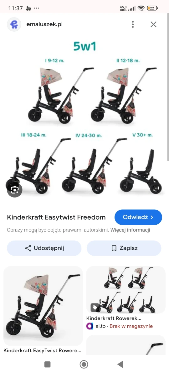 Sprzedam rowerek trójkołowy Kinderkraft EasyTwist 5w1, rowerek jak nowy, używany kilka razy , wszystko jest w zestawie , pałąk, daszek , torba itp..