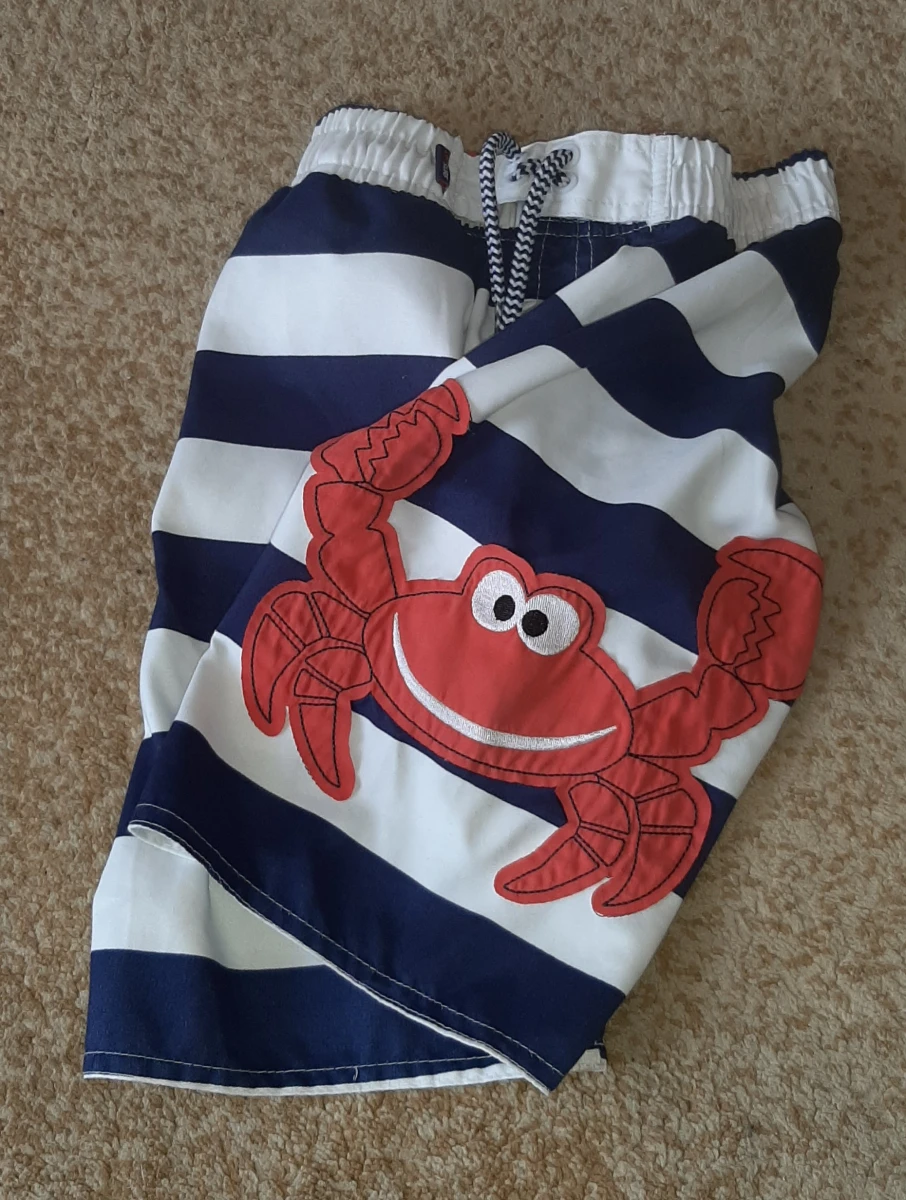 Spodenki krótkie chłopięce; roz. 5-6lat, syn jest szczuplutki więc chodził w nich od 5 do 8lat. W bardzo dobrym stanie. W pasie gumka.