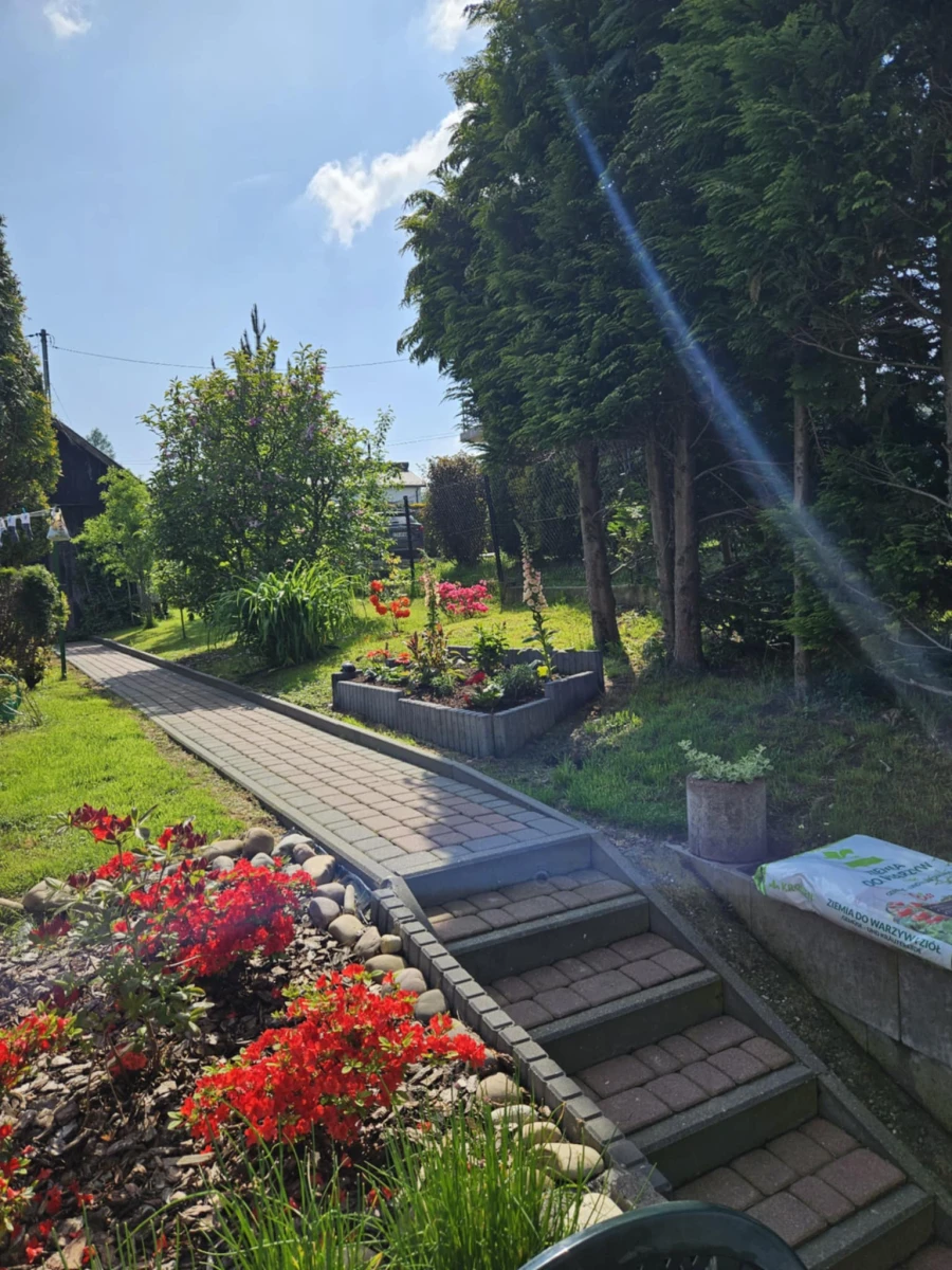 ✅ Ogród obficie obsadzony kwiatostanem oraz krzewami( zdjęcia z letniego okresu).