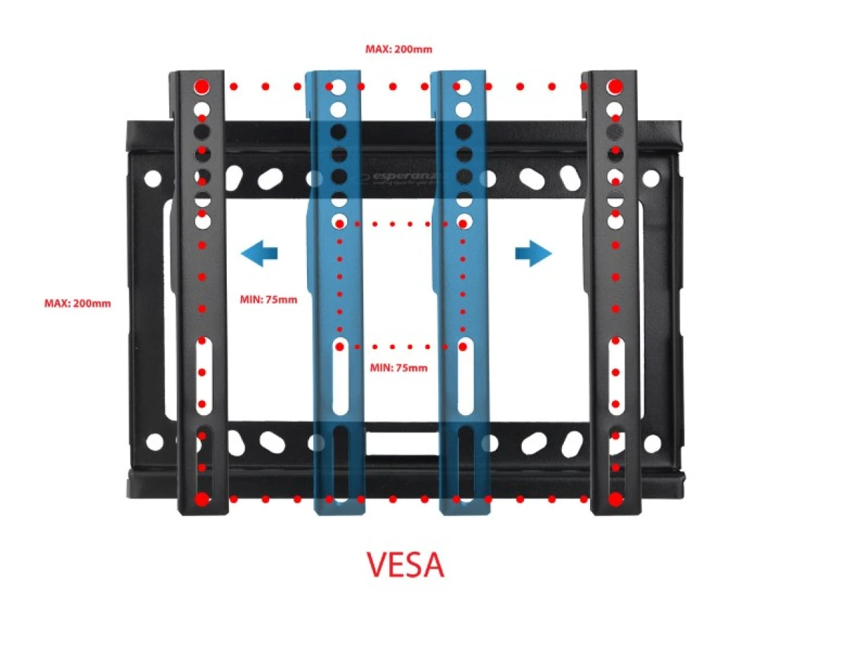 - VESA min-max standard: 75x75-200x200 [mm]